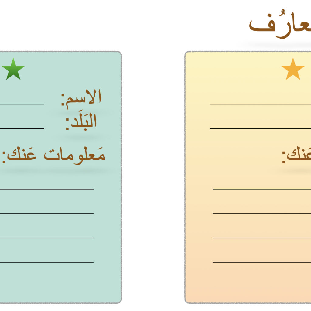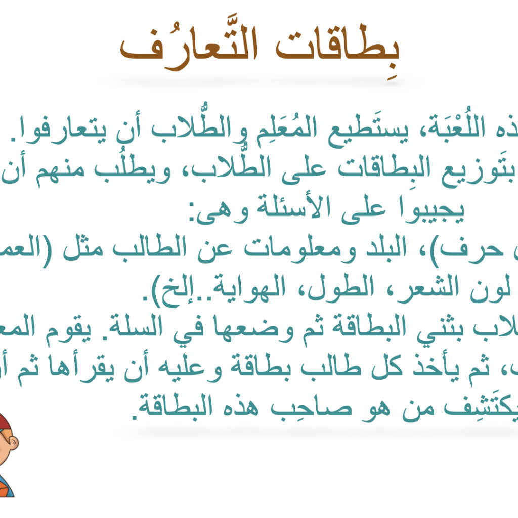 من خلال هذا المورد سيجد (المعلم، الطالب والمربي) ملف يضم بطاقات تعارف بين الطلاب