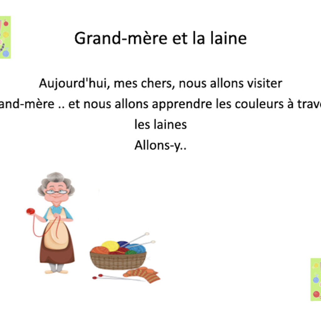 .À partir de ce produit, les enfants apprendront les couleurs à travers la grand-mère et la laine